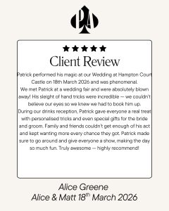 It was fantastic to see the reactions from Alice & Matt and their guests — lots of laughter, amazement, and moments that people were still talking about long after the performance.